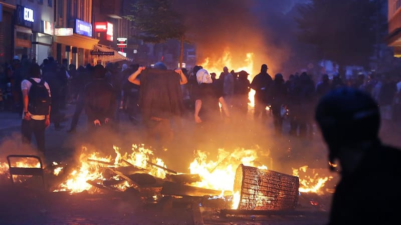 Los disturbios se concentraron en la calle en la que se encuentra la casa ocupada por Rote Flora, convocante de la marcha de la izquierda radical "Welcome to hell (Bienvenido al infiero)", el jueves, donde se originaron los primeros disturbios violentos.