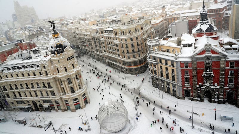 En la capital, que no había conocido semejante nevada desde 1971, se vieron esquiadores en la célebre plaza de la Puerta del Sol e incluso a un hombre en un trineo tirado por cinco perros. Además de Madrid, Aragón (noreste), la región de Valencia (este), Castilla-La Mancha (centro) y Cataluña (noreste) fueron las zonas más afectadas por esta tormenta.