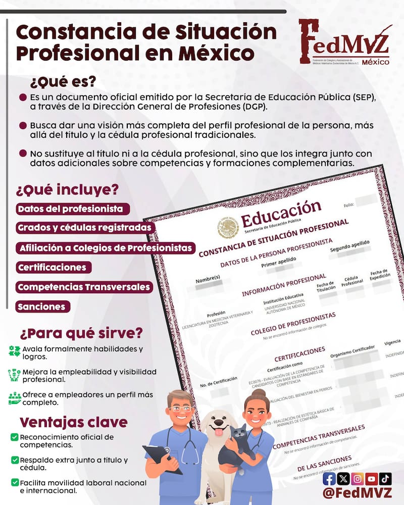 Uno de los equipos de profesionales en hacer eco de este nuevo documento fue la Federación de Médicos Veterinarios. "La Secretaría de Educación Pública presentó la Constancia de Situación Profesional, un documento oficial que fortalecerá el ejercicio profesional, integrando la cédula, colegiación, certificaciones y competencias transversales y sanciones de las y los profesionistas en México", indicó FEDMVZ en su cuenta de X.