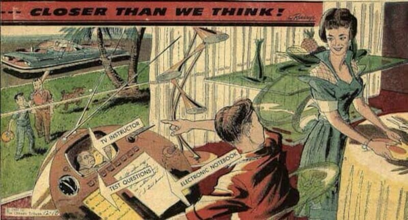 En 1958, el reconocido ilustrador Arthur Radebaugh publicaba una visión revolucionaria sobre el futuro de la educación que hoy, más de seis décadas después, resulta sorprendentemente profética.