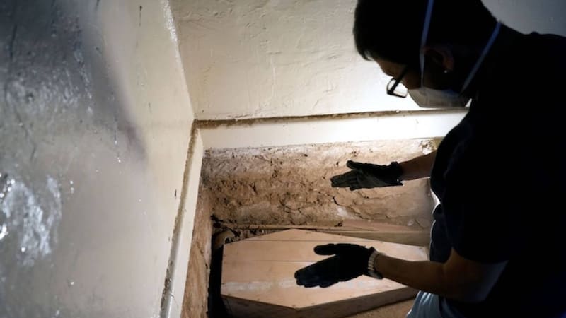 - Tres bultos mortuorios adicionales debajo del ataúd, también con restos infantiles.