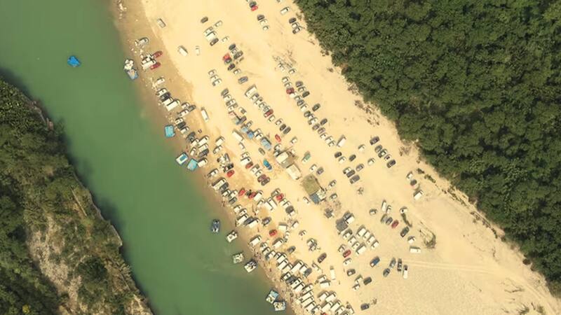 Además, las imágenes captadas por drones mostraron una realidad sorprendente: decenas de vehículos estacionados en la ribera del río mientras embarcaciones inflables transportaban bultos de mercadería en ambas direcciones.