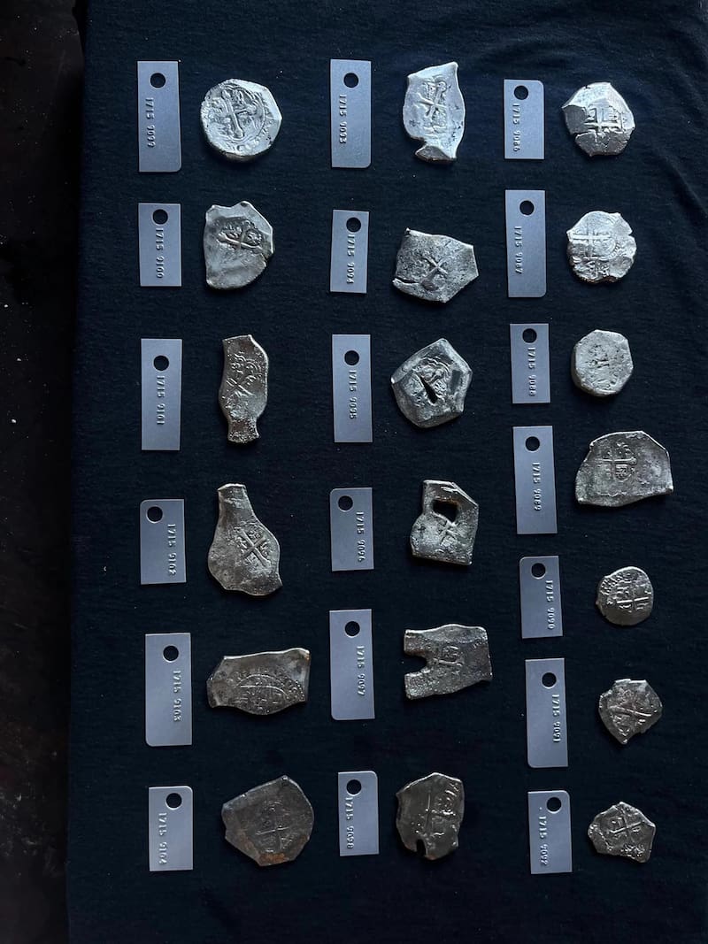 Los buzos a cargo de la operación hallaron más de 1,000 monedas de plata (reales), 5 de oro (escudos) y otros "artefactos raros de oro" durante la temporada de salvamento de verano de 2025, detalló en un comunicado 715 Fleet.