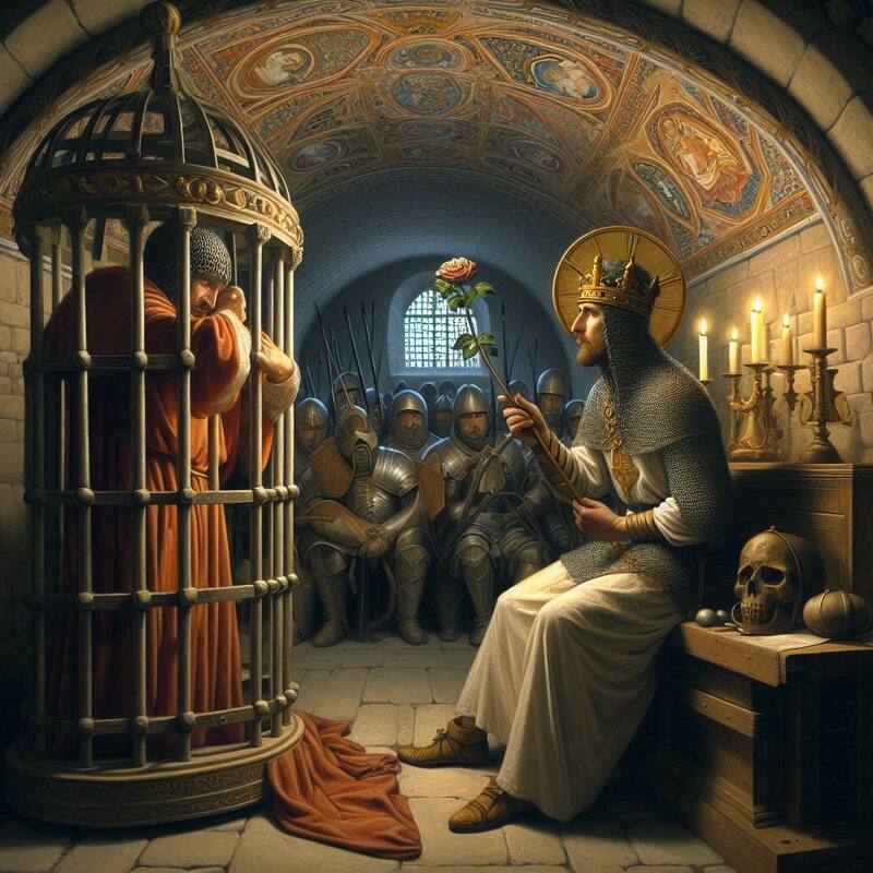 Tras descubrirlo, el emperador romanao Claudio II ordenó su detención y lo encerró en una mazmorra. Valentín, además de ser sacerdote, también era médico, así que un día, el soldado que estaba en su custodia lo retó a que curara a su hija Julia que era ciega de nacimiento.