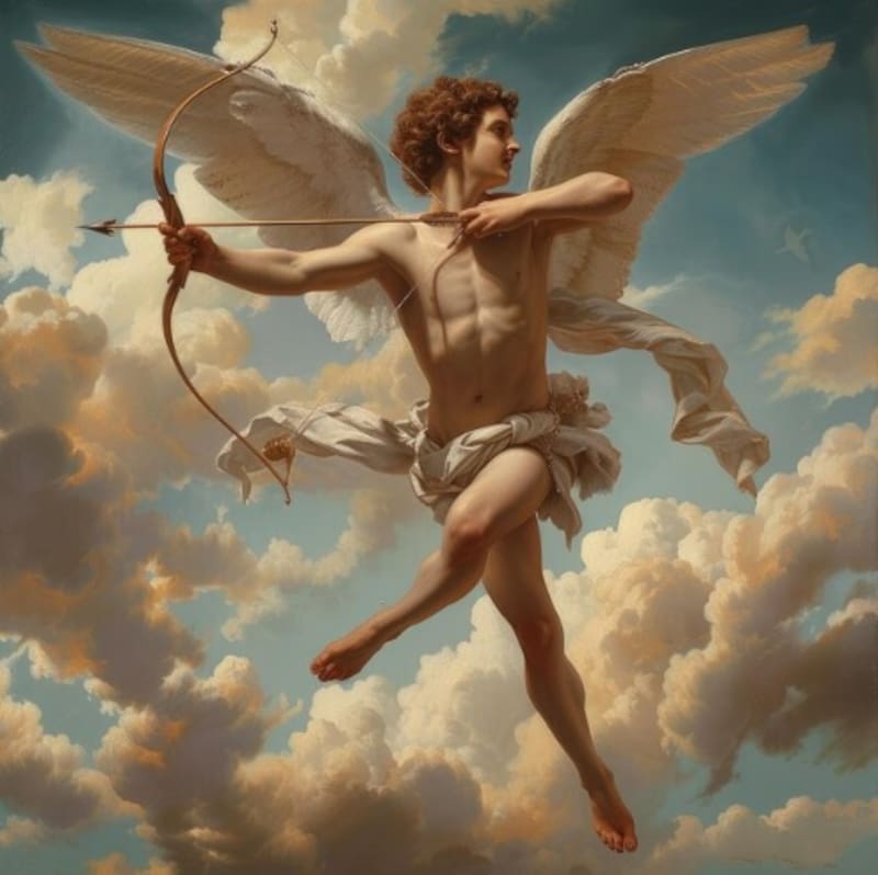 Eros es hijo de Poros (la recurso) y Penía (la pobreza). Este particular origen simboliza la dualidad del amor.