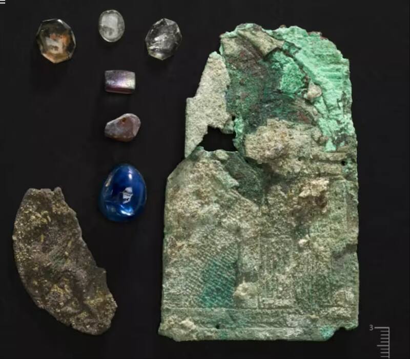 Entre los hallazgos más importantes en la Catedral de Stavanger, los arqueólogos encontraron una placa de cobre dorado de cinco por diez centímetros, con pequeños agujeros en los bordes que sugieren que estaba unida a un objeto mayor, posiblemente una placa de madera.