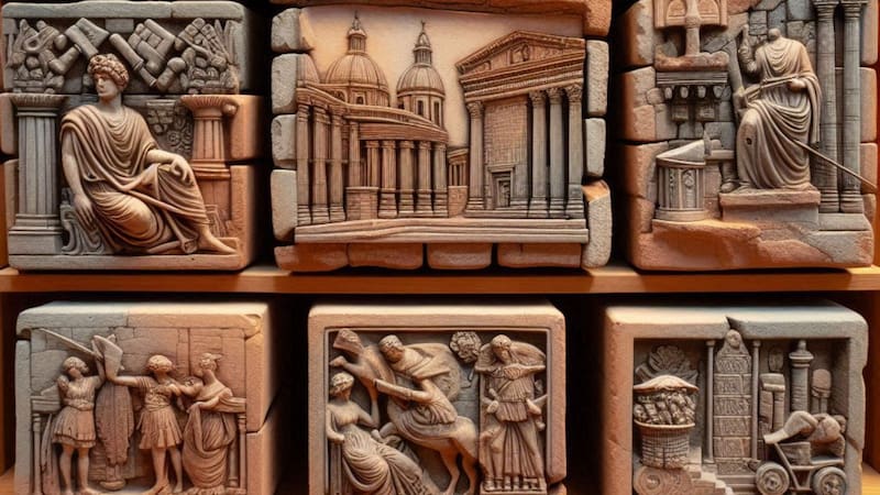 La excavación también reveló una importante serie de losas de campana (terracotas figurativas utilizadas para la decoración de tejados) con escenas mitológicas, reutilizadas como cubiertas para las alcantarillas pero "probablemente realizadas originalmente para cubrir alguna estructura del jardín", según los arqueólogos.
