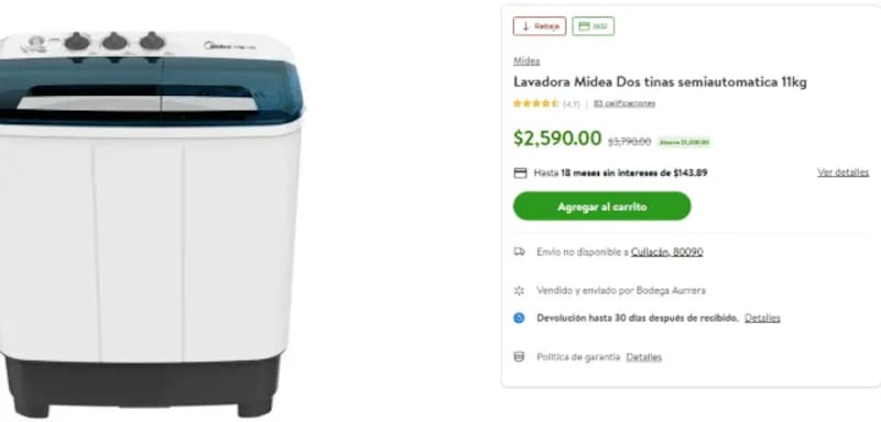 El proceso de compra es sencillo a través de la tienda en línea de Bodega Aurrera. Simplemente buscando el modelo de lavadora Midea de 11 kg doble tina o explorando la sección de línea blanca, los consumidores podrán añadir el producto al carrito y elegir la opción de Meses Sin Intereses para asegurar el ahorro y la nueva pieza clave de su hogar.