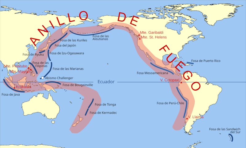 El Anillo de Fuego del Pacífico, comúnmente conocido como Cinturón de Fuego, es una región en forma de herradura que bordea el Océano Pacífico.