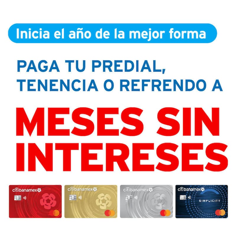 El banco Banamex ofrece una excelente promoción para que todos su clientes puedan aprovechar los beneficios en el pago de tu predial, tenencia o refrendo sin tener que pagar de más y con el ahorro de los intereses, pues con el uso de las tarjetas de crédito de este banco en el pago de estos impuestos, no pagas intereses.