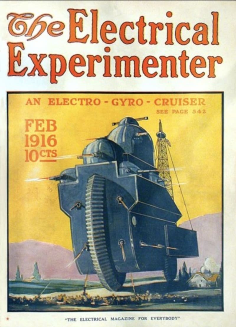 Durante la Primera Guerra Mundial, la revista The Electrical Experimenter mostraba en su portada algo que parecía sacado de una película de acción: un tanque eléctrico -denominado por ellos electro giro crucero- un artefacto que cambiaría para siempre el campo de batalla.