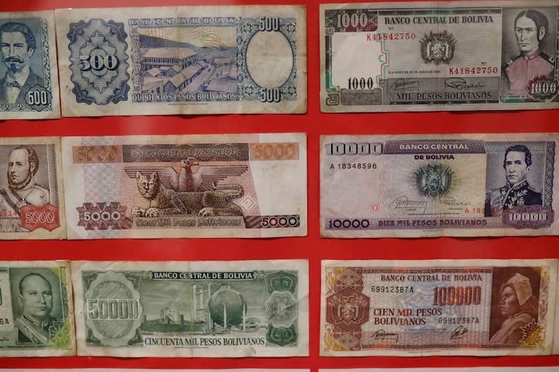 Otro espacio relevante es el de los "billetes inflacionarios", entre ellos varios bolivianos de la llamada hiperinflación que afectó al país en la década de 1980 y que superó el 4.000 %, con las imágenes de la heroína Juana Azurduy (o Asurdui), el mariscal Andrés de Santa Cruz o el prócer boliviano Eduardo Abaroa.