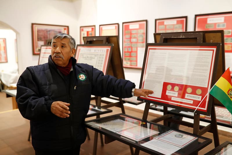 Borda también se encargó de conseguir las representaciones en moneda de activos virtuales como el bitcoin y en su colección está el último billete conmemorativo por el bicentenario de Bolivia.
