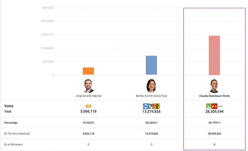 Claudia Sheinbaum con 23.309.544 votos y un 58.79%.