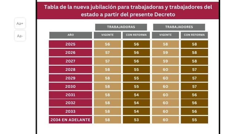 La nueva medida pensionaria revierte parcialmente los incrementos de edad establecidos en la reforma al ISSSTE de 2007, que elevaba gradualmente la edad de retiro. Ahora se detiene ese aumento y se iniciará una reducción progresiva.