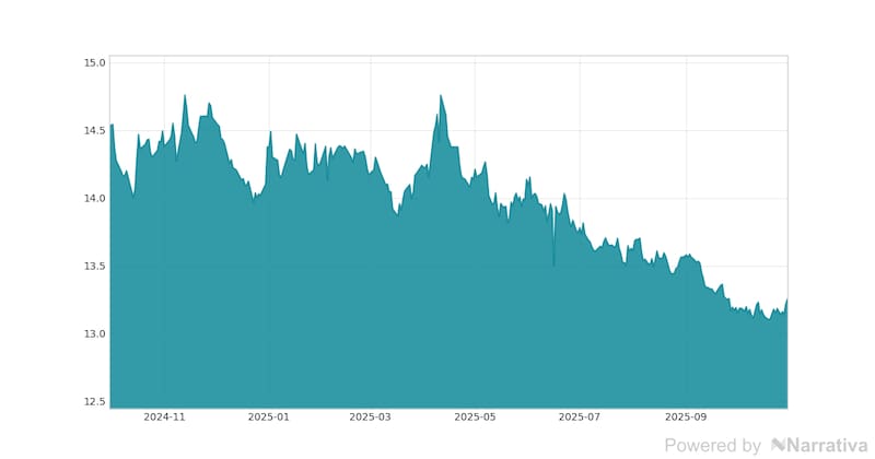 Durante el día de ayer, este activo presentó un costo máximo de 13.29 pesos y un mínimo de 13.25 pesos.