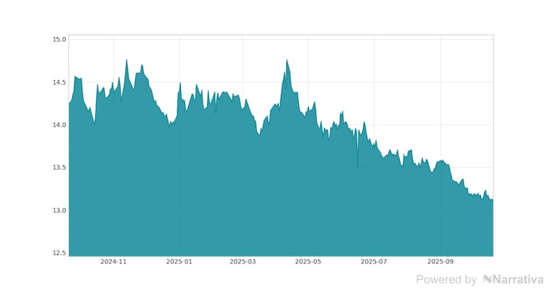 La volatilidad económica del Dólar canadiense en la última semana, con un 4.20%, es significativamente menor que su volatilidad anual del 9.48%, lo que indica que su comportamiento ha sido mucho más estable en el último año.