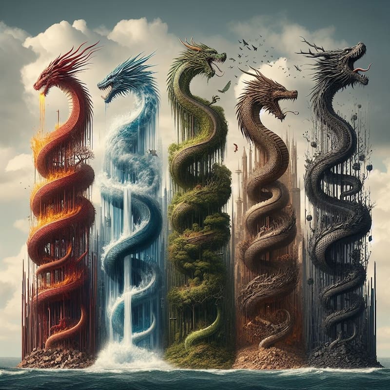 Los cinco elementos son: madera, fuego, tierra, metal y agua, y cada uno de ellos se asocia con dos signos animales en el horóscopo chino. De ahí que este año, el 2024, sea el inicio de un ciclo para el Dragón y por tanto, ahora le corresponde ser del elemento Madera.