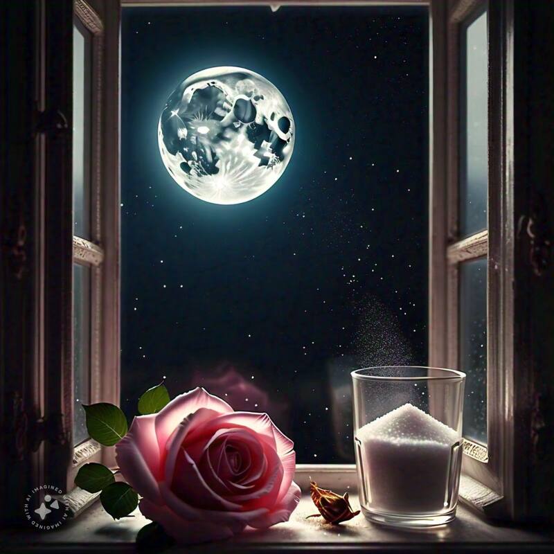 Toma una rosa o flor que tengas a tu alcance. Córtala con su tallo lo más largo posible, colócala en un vaso transparente con agua y agrega una cucharadita pequeña de azúcar. Déjala toda la noche al aire libre.