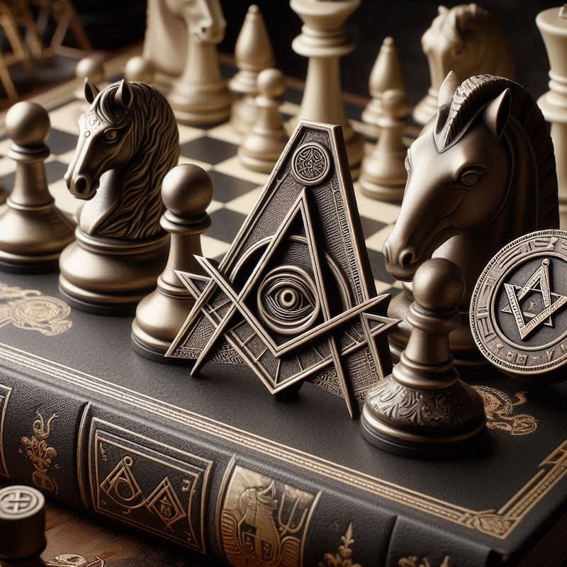 No obstante, uno de los campos más intrigantes de asociación simbólica ha sido con la masonería, cuyos símbolos y rituales han sido interpretados en paralelo con las piezas y movimientos del tablero de ajedrez, enfatizando la conexión entre estrategia, conocimiento oculto y desarrollo personal.