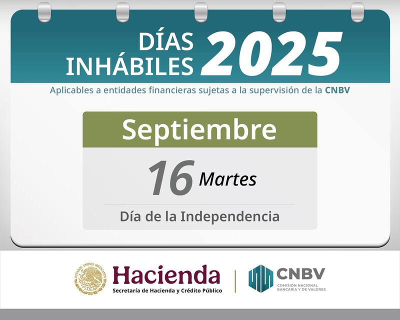 Las fechas predeterminadas del 2025 durante las entidades financieras y bancos sujetos a la supervisión de la CNBV cerrarán sus puertas los días: