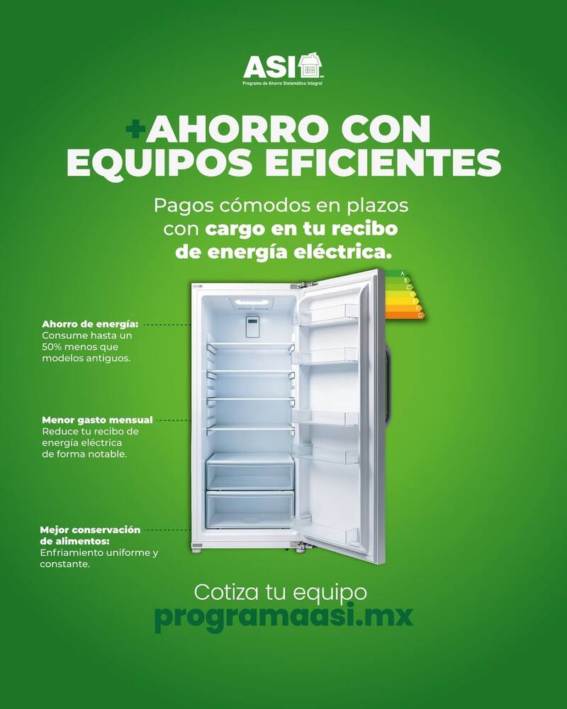 Ahora es posible renovar tus electrodomésticos sin necesidad de recurrir a tarjetas de crédito ni trámites bancarios. El Programa de Ahorro Sistemático Integral, ASI, permite financiar equipos como refrigeradores eficientes con pagos cómodos cargados directamente al recibo de luz de la Comisión Federal de Electricidad, CFE.