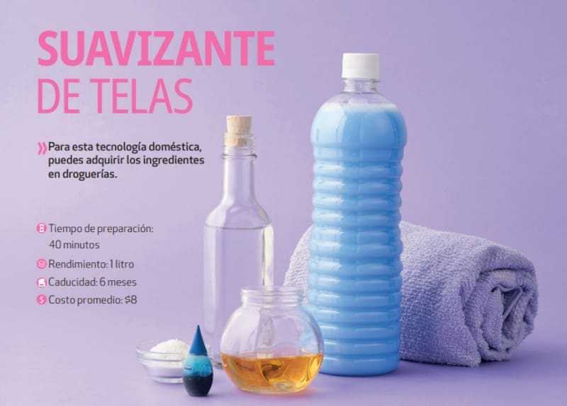 El tiempo de preparación estimado no superará los 40 minutos. El resultado será un suavizante casero de hasta 1 litro con rico olor, un plazo de caducidad de 6 meses y un costo promedio de hasta 8 pesos.