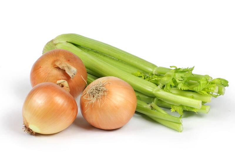 - Lava el apio, la cebolla y el ajo.