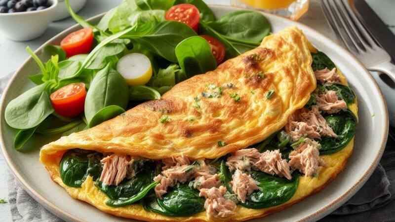 Una buena opción para el desayuno es la tortilla de espinaca y atún, un plato saludable y completo que aporta nutrientes.