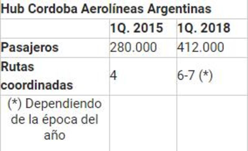 “Fue un éxito comercial y operativo , resume Mario Dell'Acqua CEO de Aerolíneas Argentinas, sobre el primer año del hub Córdoba. Y lo refuerza con números: en el primer trimestre de 2015 viajaron por nuestra terminal aérea 280.000 pasajeros; en el mismo lapso de este año esa cifra llegó a los 412.000 tickets.