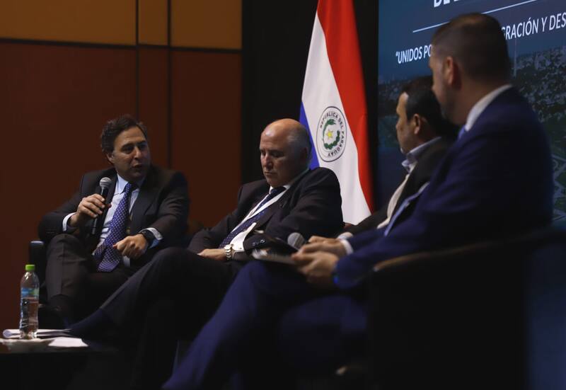 -TRANSPORTE, INTEGRACION Y DESARROLLO EN LAS AMÉRICAS integrada por Martín Eurnekian, director Ejecutivo de Corporación América; Dr. Calvin Creech, vicepresidente de la Asociación Mundial para las Infraestructuras de Transporte Acuático (PIANC). Moderador: Ministra Claudia María de la Paz Centurión, Ministerio de Obras Públicas y Comunicaciones, Paraguay.