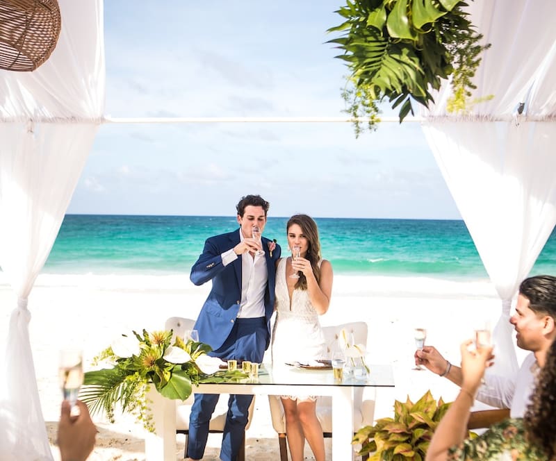 "El alojamiento va de u$s 2700 a u$s 3600 la semana por persona. Hay algunos que llegan a u$s 10.000 la noche. Con un costo adicional, que varía por hotel pero no tiene gran impacto en el presupuesto del viaje, se organiza el altar y gacebo en la playa", aseguró.