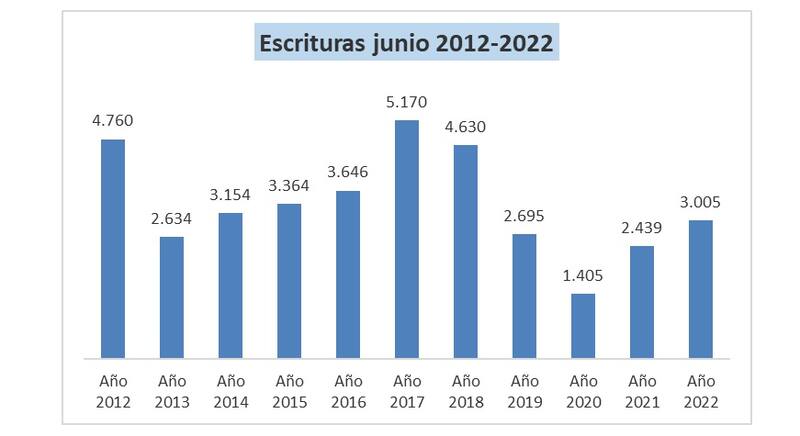 La cantidad total de las escrituras registró en el sexto mes del año una suba de 23,2% respecto del nivel de un año antes, al sumar 3005 registros, mientras que el monto total de las transacciones realizadas escaló un 95,9%, con $ 45.527 millones.