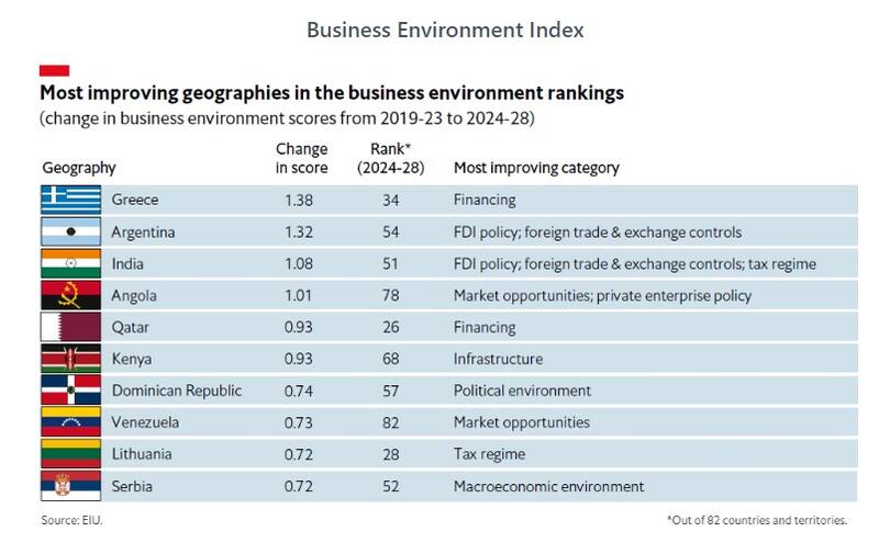 "Pensamos que el Gobierno va a deshacer muchas de las políticas que eran desfavorables para hacer negocios", le dijo a la BBC Nicolás Saldías, economista senior del EIU para América latina. Entre las medidas que destacó el economista, figuran liberar el comercio, levantar cepo y estimular la inversión extranjera en las industrias mineras y energéticas, así como también deshacer el control de precios. "Le queda mucho por mejorar", explicó.