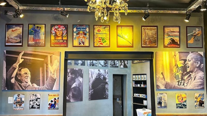En la entrada al establecimiento cordobés, colgarán banderas de América latina ('la Patria Grande') con el escudo del Partido Justicialista (PJ) y la leyenda "todos unidos triunfaremos", siguiendo el estilo de los restó de Buenos Aires, en donde las paredes están escritas con frases como "el peronismo enamora" junto con cuadros de Perón y Evita de momentos históricos, como el acto del 17 de octubre de 1951 y los últimos minutos de ella hablando a la multitud reunida en la Plaza de Mayo.