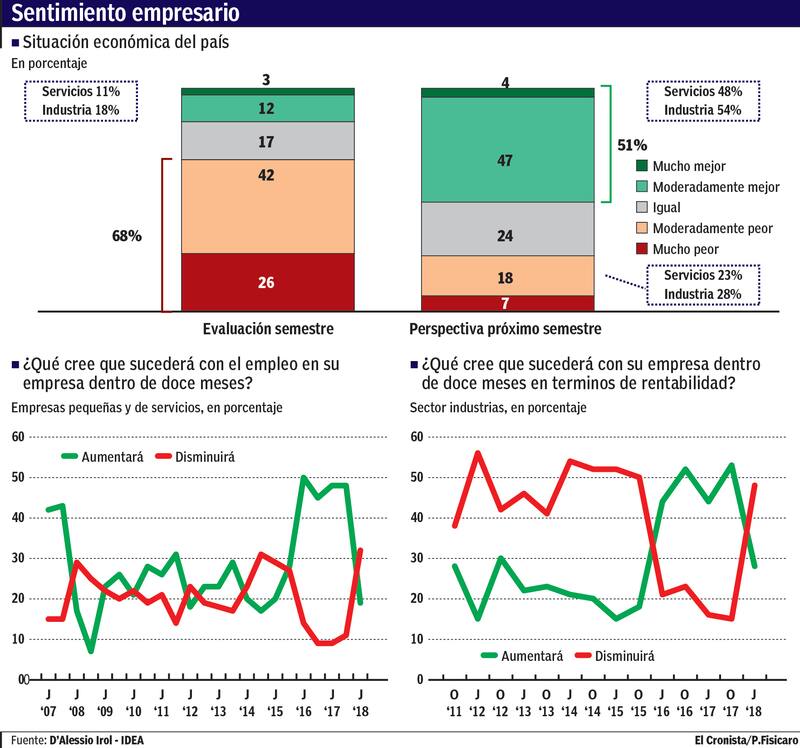"Hay una percepción adversa del primer semestre, pero existe una expectativa de recuperación", mencionó Eduardo DAlessio durante la presentación del informe. Entre los relevados, solo el 25% pronostica un semestre moderadamente o mucho peor, mientras que 2 de cada 10 creen que la performance no cambiará.