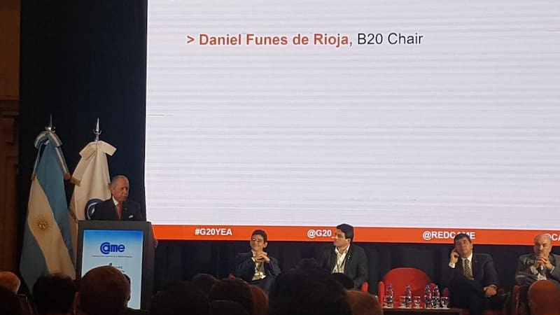 "Trabajar en el sector privado, para fortalecerlo. Mejorar la educación para elevar las capacidades de todos los individuos deben ser políticas fundamentales. Esa debe ser nuestra pelea", resaltó Daniel Funes de Rioja, en su discurso en el YEA 20 que se realiza en Buenos Aires.