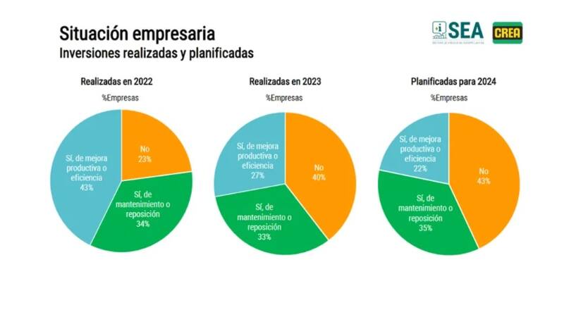 El informe reveló que el 62% de los empresarios CREA -Consorcios Regionales de Experimentación Agrícola, una asociación civil sin fines de lucro conformado por 232 grupos, que, a su vez, se distribuyen en 19 regiones- manifestó que la coyuntura actual no es adecuada para realizar inversiones, mientras que, el restante 14% consideró propicio el escenario para ese propósito.
