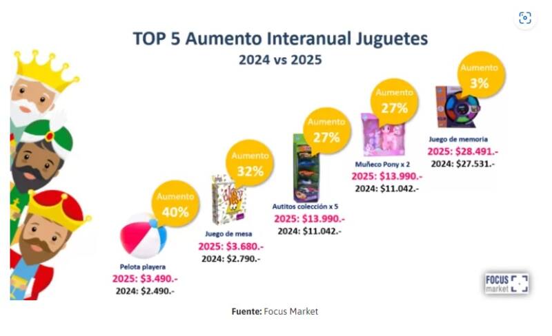 Según el informe, los precios de los regalos potenciales para Reyes Magos tuvieron incrementos promedios del 32% anual muy por debajo de la inflación promedio proyectada para el primer mes de 2025.