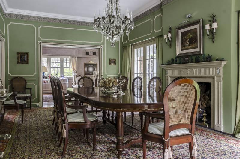 Se trata de una vivienda de estilo francés, ideal para el funcionamiento de una embajada. Se destaca el parque, con un enorme quincho y piscina, una casa de caseros y una cochera con capacidad para cuatro autos.