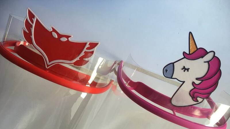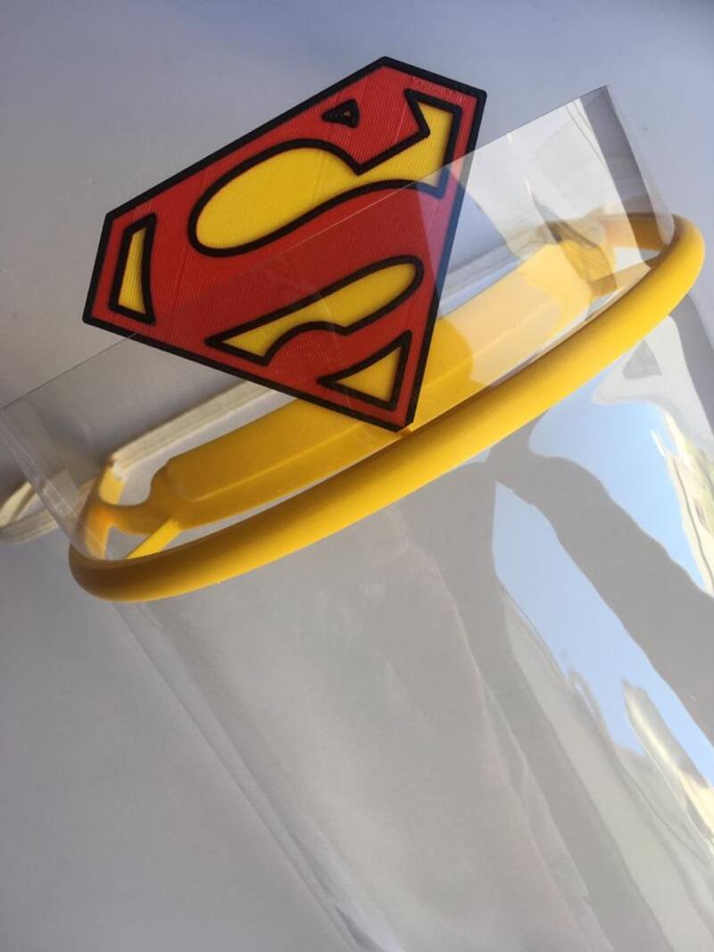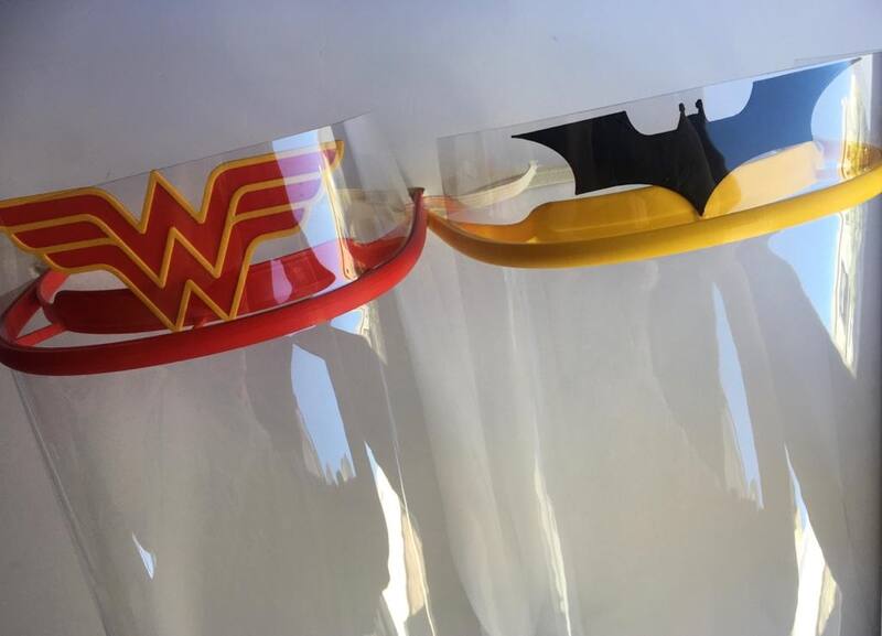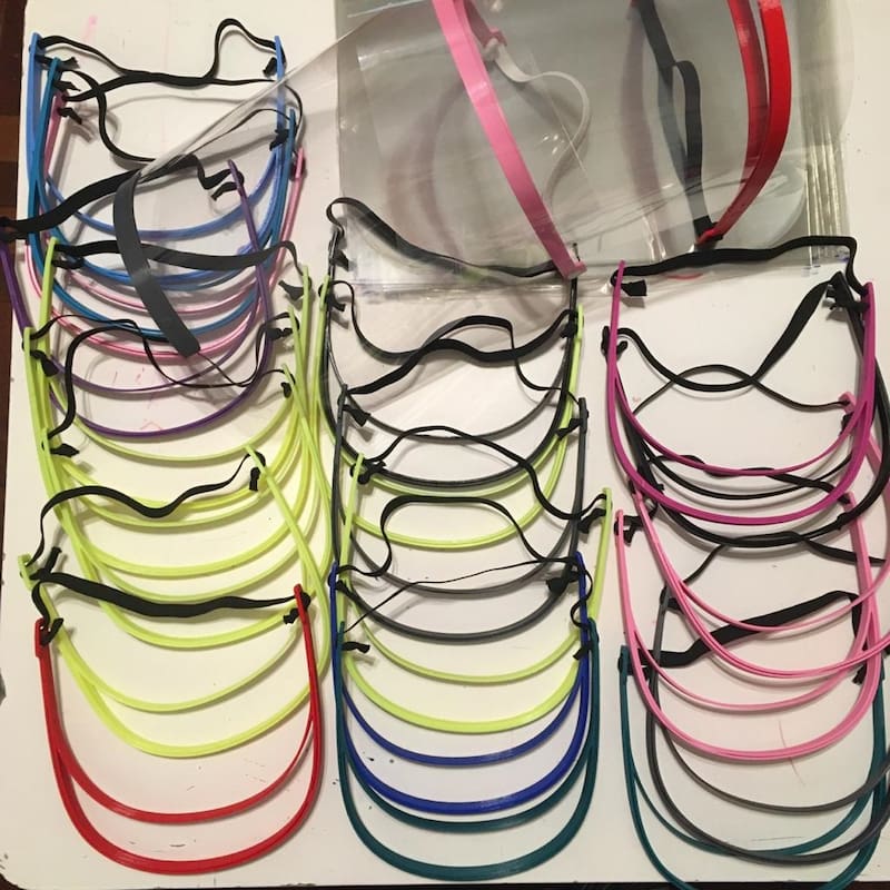 La parte de la “vincha se imprime en 3D, es plástico biodegradable, se puede lavar con agua fría y jabón. Tiene un elástico en la parte de atrás para ajustarse a la cabeza y tiene un acetato transparente de 200 micrones.