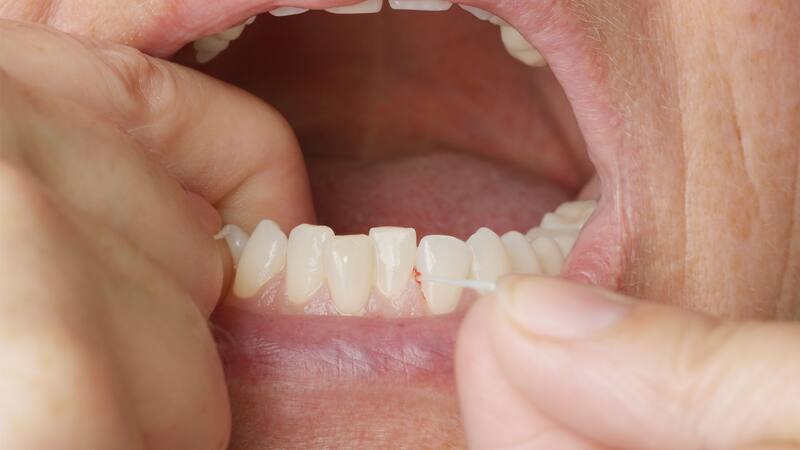 - Utilizar hilo dental entre cada diente. Se debe introducir la seda de forma suave y realizar movimientos de atrás hacia adelante para remover la película de bacterias que se acumula en los espacios entre cada pieza dental. Es importante hacer esto al menos una vez al día, mínimamente antes de irse a dormir.