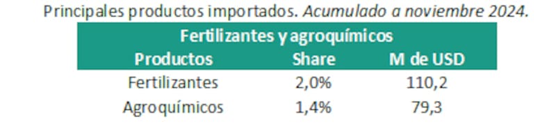 En tanto, el complejo de fertilizantes y agroquímicos acumula el 3,4% de las importaciones totales, tornándose relevante para el agro argentino. Estos productos acumulan el 3,4% de las importaciones totales, con un valor de u$s 189,5 millones. Las tecnologías avanzadas en este sector, muchas veces importadas desde Estados Unidos, han permitido a los productores locales mejorar sus rendimientos y competir en mercados internacionales.