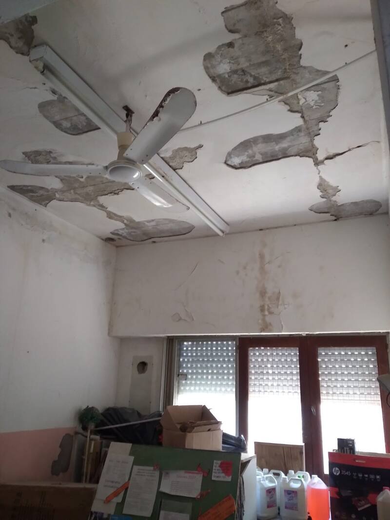 El campo de deportes está actualmente inhabilitado por efluentes cloacales y los alumnos realizan actividad física y tienen sus recreos en el estacionamiento de la institución.
