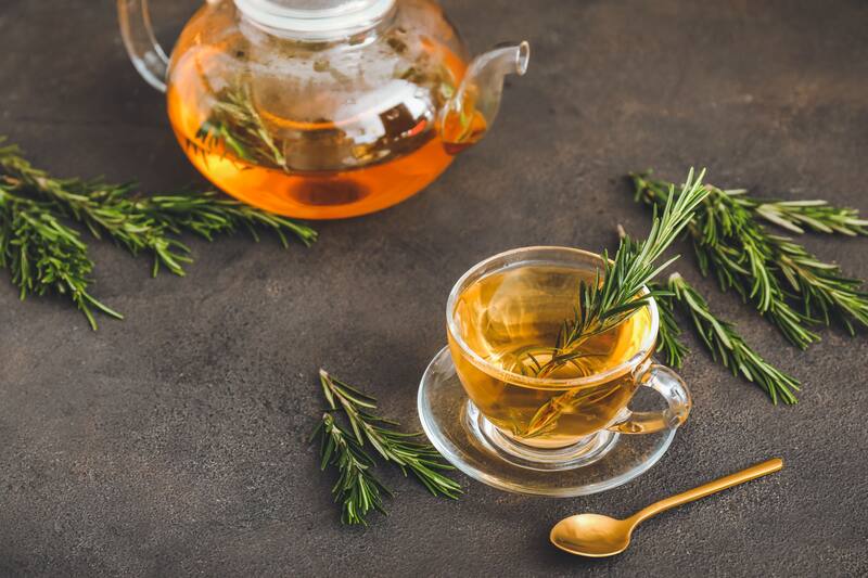 Infusión caliente: hervir una cucharadita de hojas secas de romero en agua durante 5 minutos y beber después de las comidas.