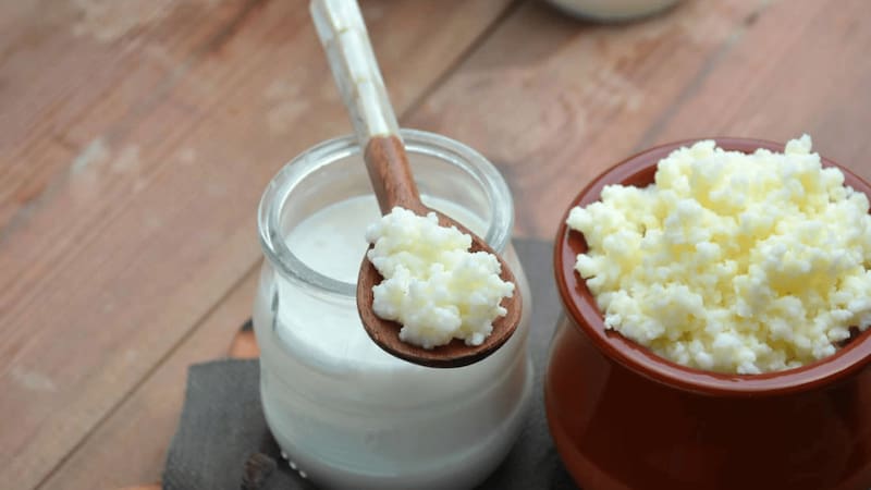 - Coloca los granos de kéfir en el frasco de vidrio.