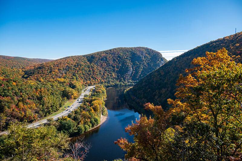 El río Delaware entre Nueva Jersey y Pensilvania está atravesado por los montes Apalaches, uno de los lugares más pintorescos para visitar en New Jersey. Con una extensión de más de 2800 hectáreas y numerosas actividades al aire libre, aquí encontrarás las rutas de senderismo, áreas de acampe y espacios para practicar kayaking y escalada que más se aprecian en este estado.