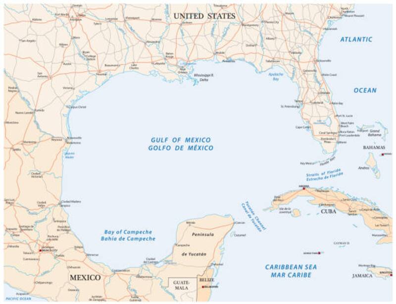 El Golfo de México es una cuenca semicerrada que conecta a América del Norte y Central. En Estados Unidos, bordea cinco estados: Texas, Luisiana, Misisipi, Alabama y Florida. En México, colinda con Tamaulipas, Veracruz, Tabasco, Campeche y Yucatán. Cuba también comparte una pequeña porción de costa en el límite sureste del golfo.