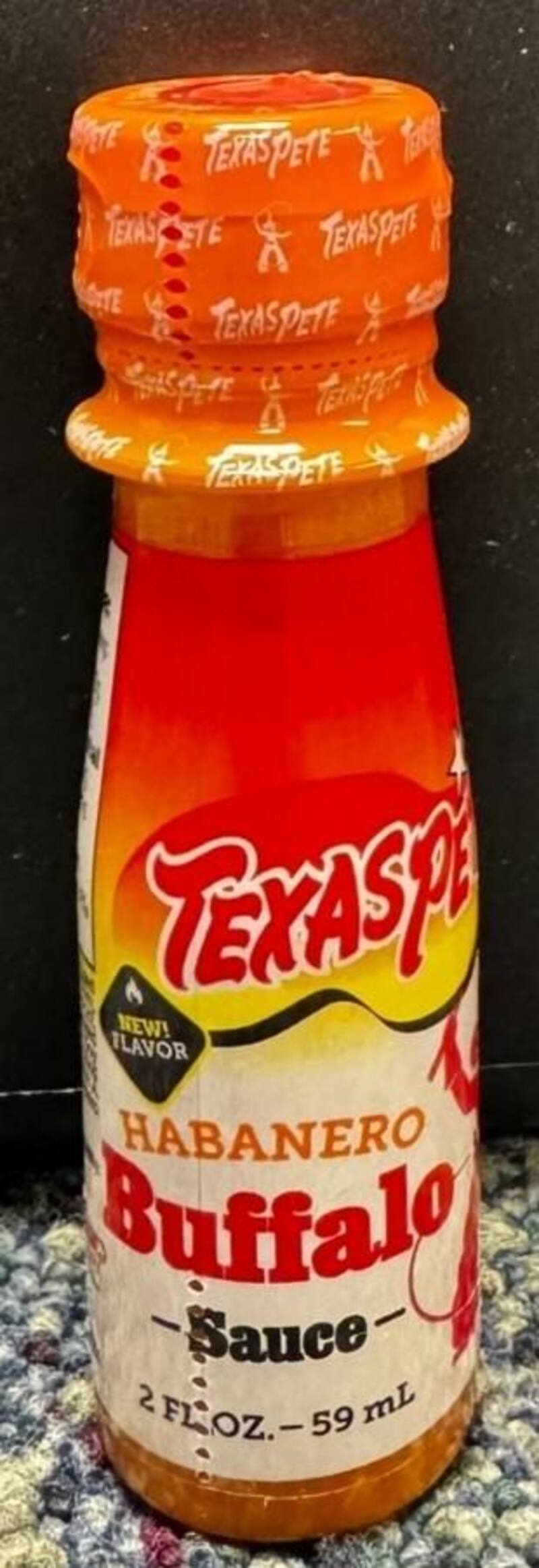 | Salsa de búfalo Texas Pete Habanero | 12 onzas líquidas | 0 75500 10028 4 | Mejor utilizado por 11 07 25 |